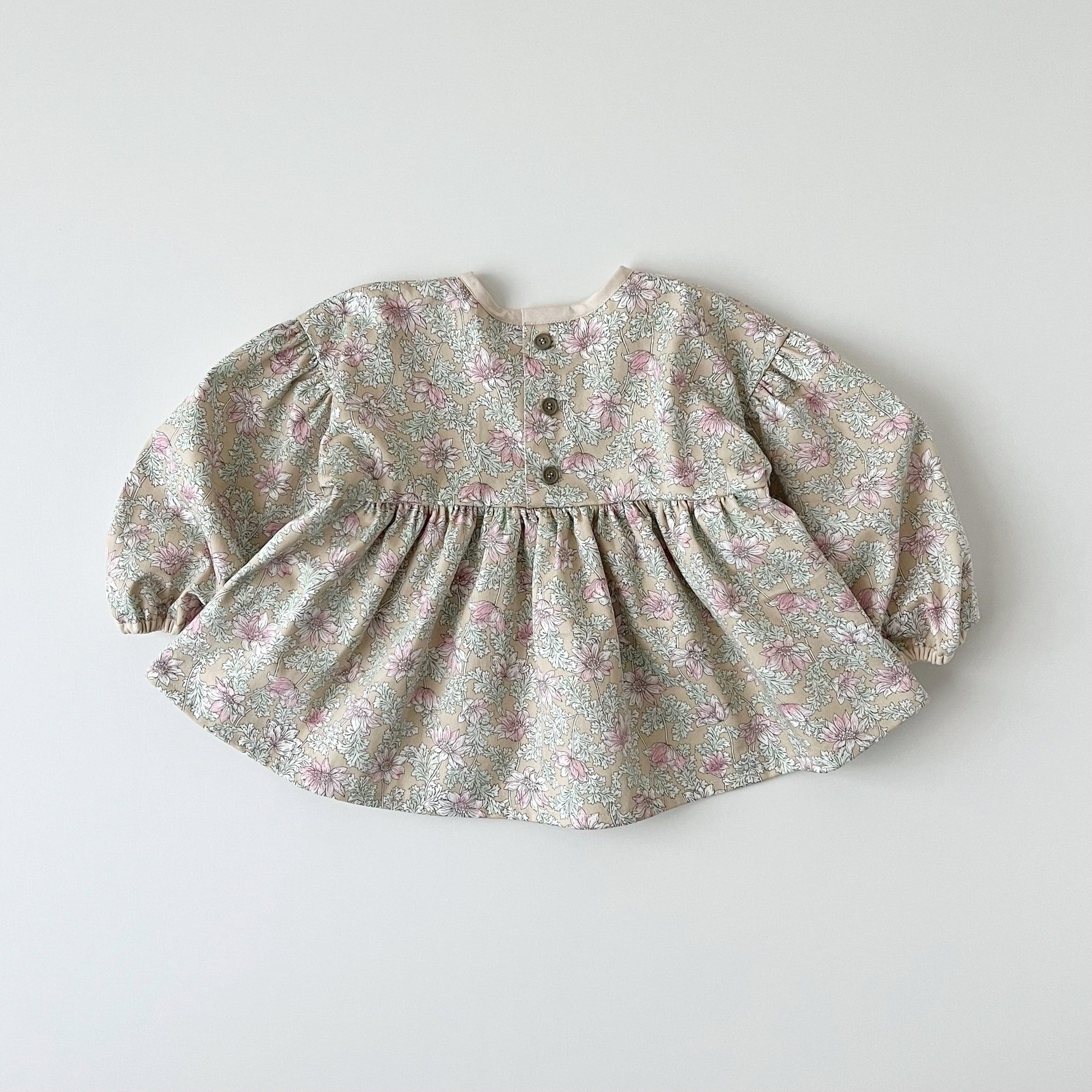 アンティークな淡い色合いの花柄で可愛らしい雰囲気のセットアップ